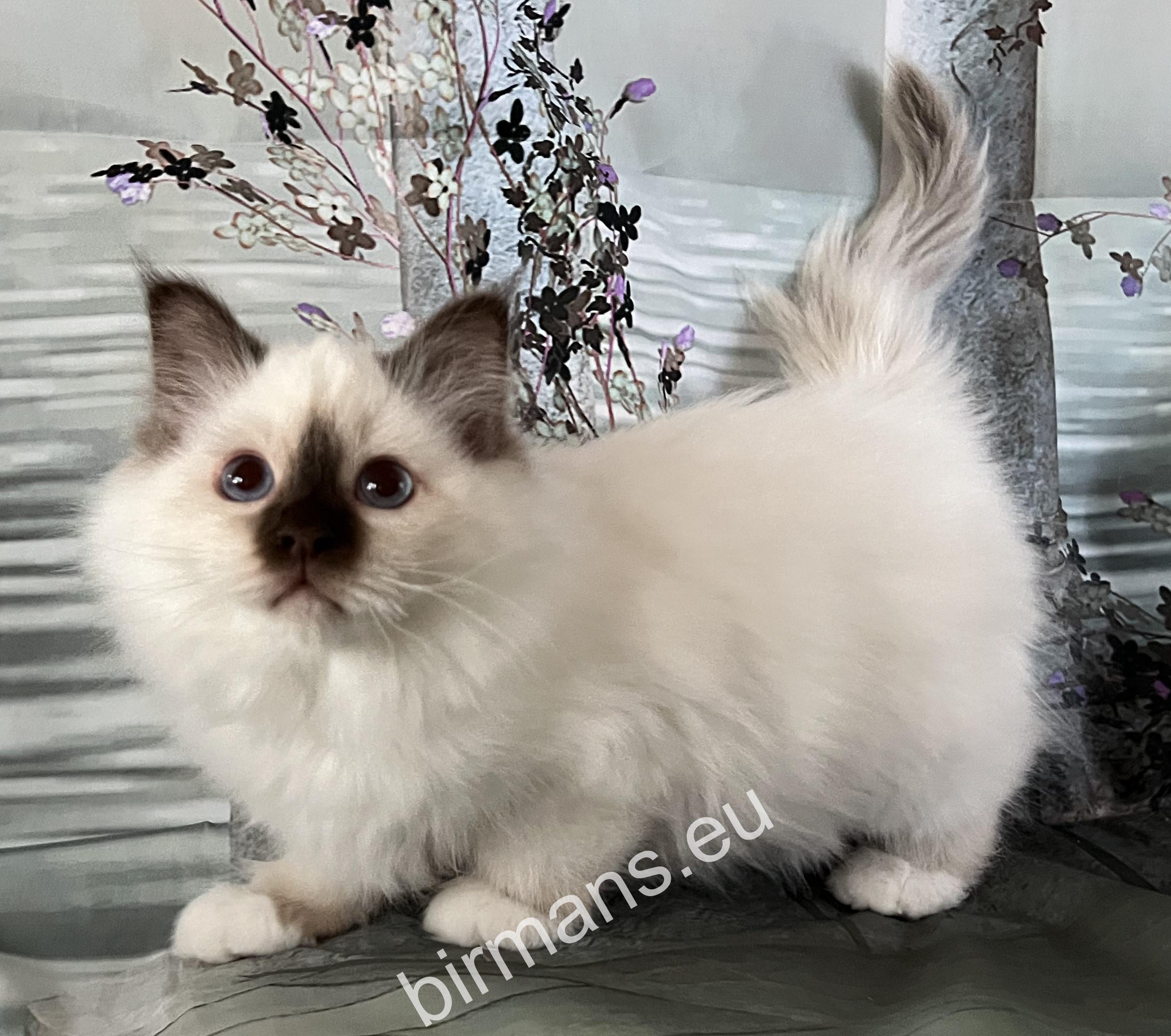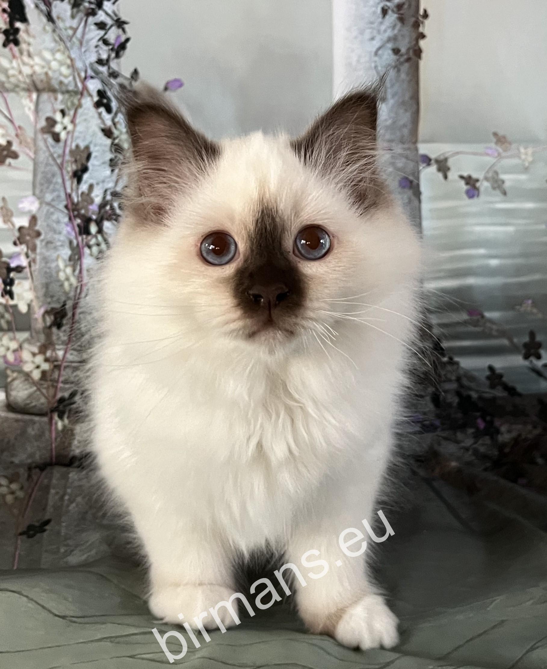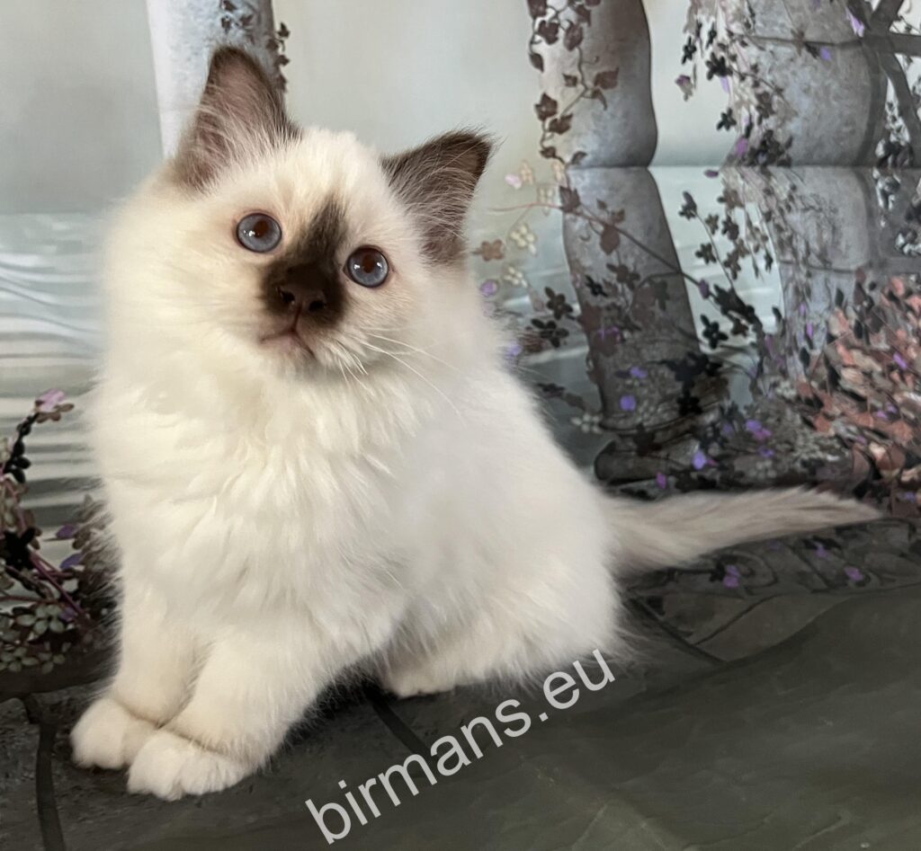 Félix es uno de los mejores gatos de Birmania tanto en apariencia como en conformación. Tiene una naturaleza abierta. Es valiente, curiosa y le encanta ronronear tumbada a mi lado. Es maravilloso estar con él.