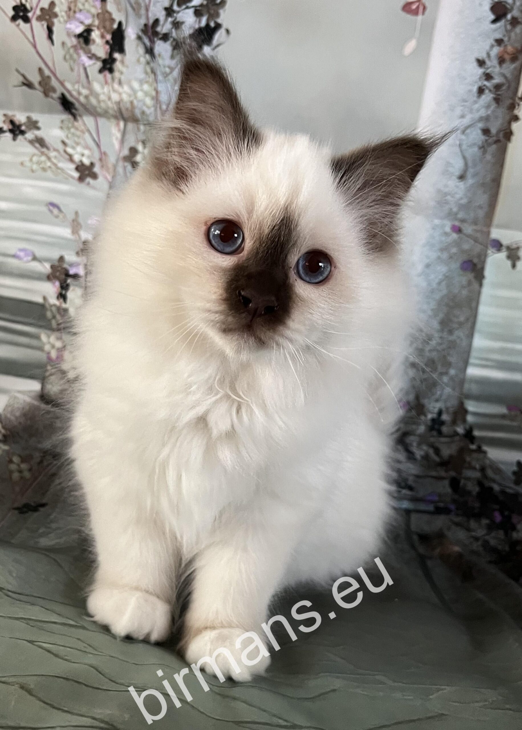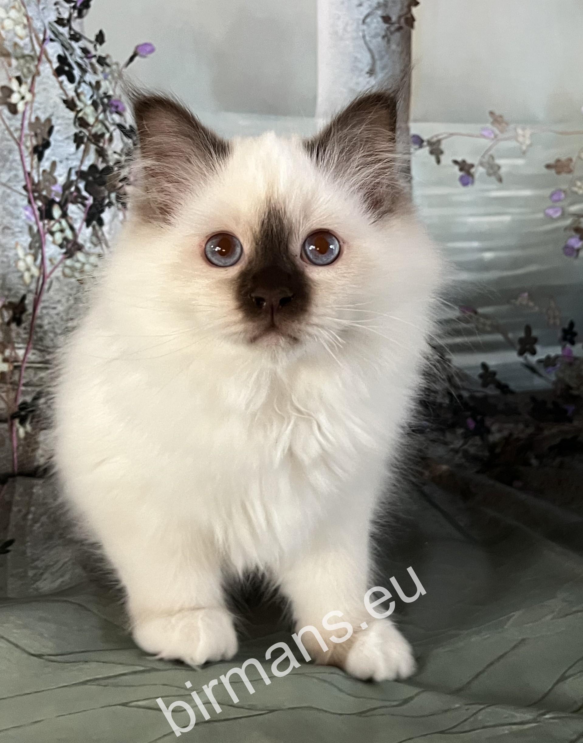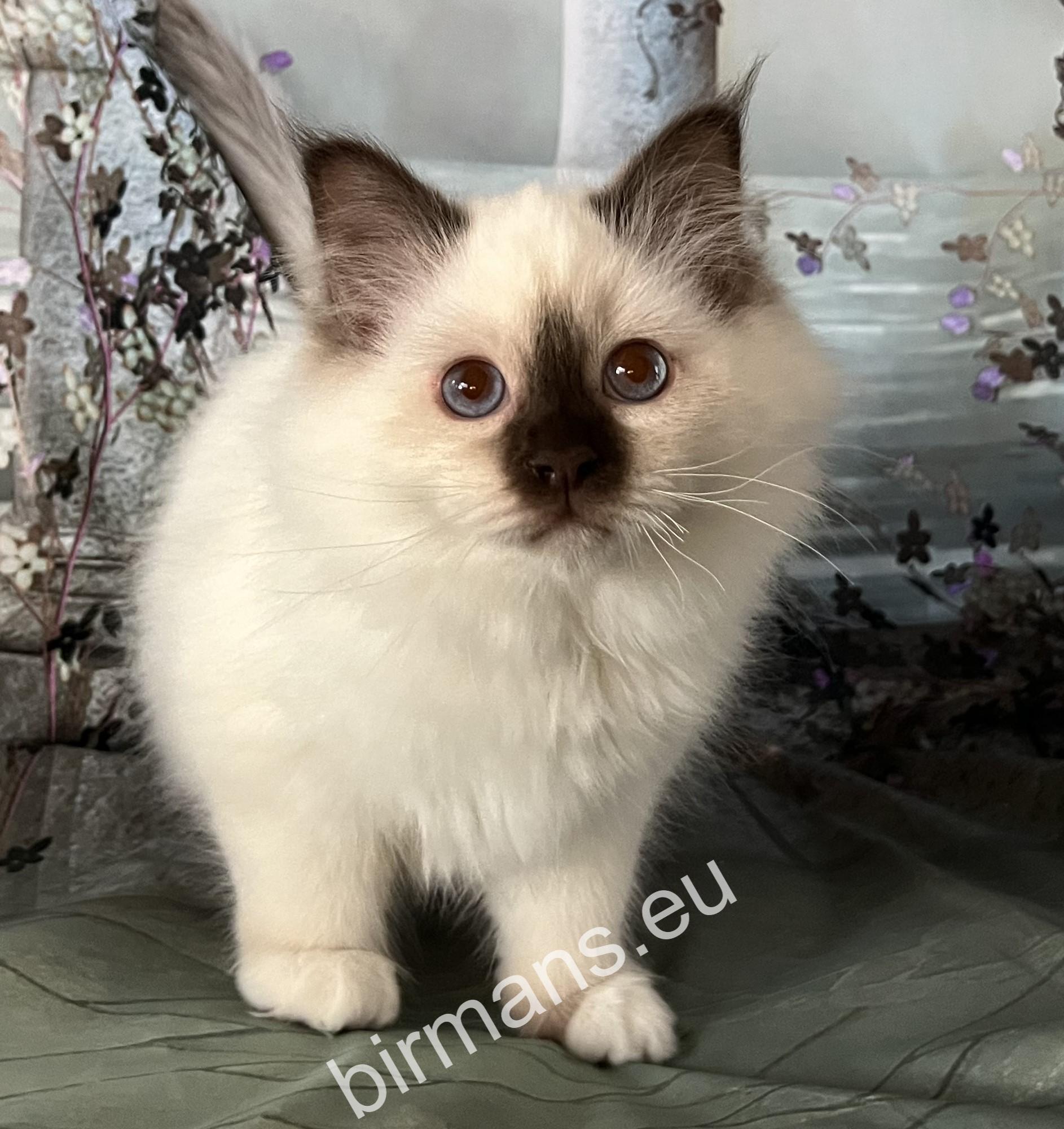 Félix es uno de los mejores gatos de Birmania tanto en apariencia como en conformación. Tiene una naturaleza abierta. Es valiente, curiosa y le encanta ronronear tumbada a mi lado. Es maravilloso estar con él.