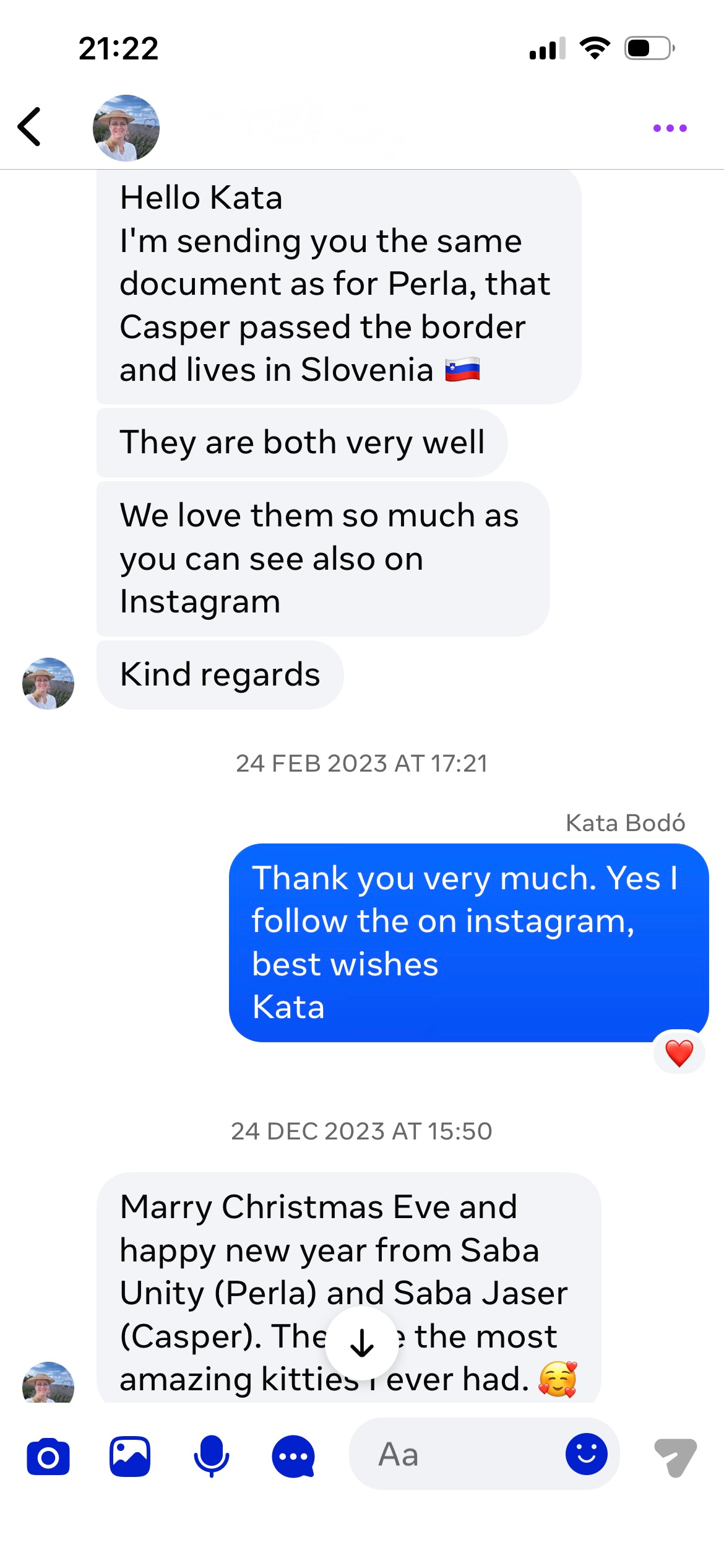 Pienso en ti a menudo y te envío energía con gratitud desde Eslovenia.»
