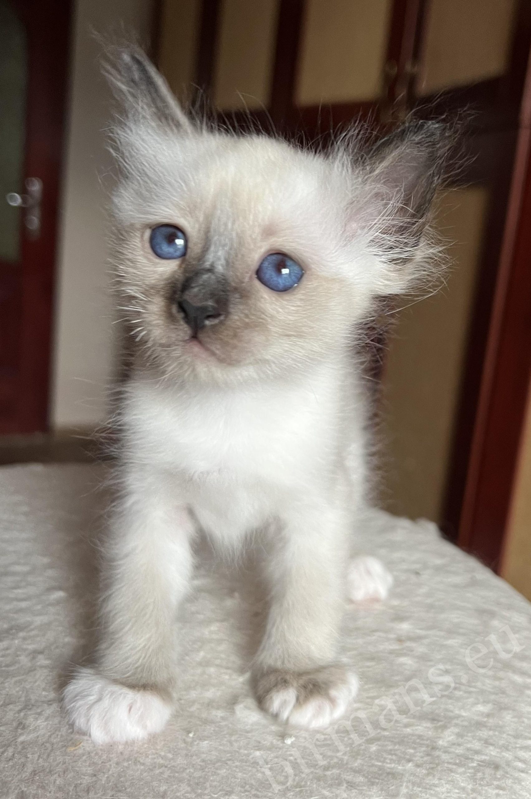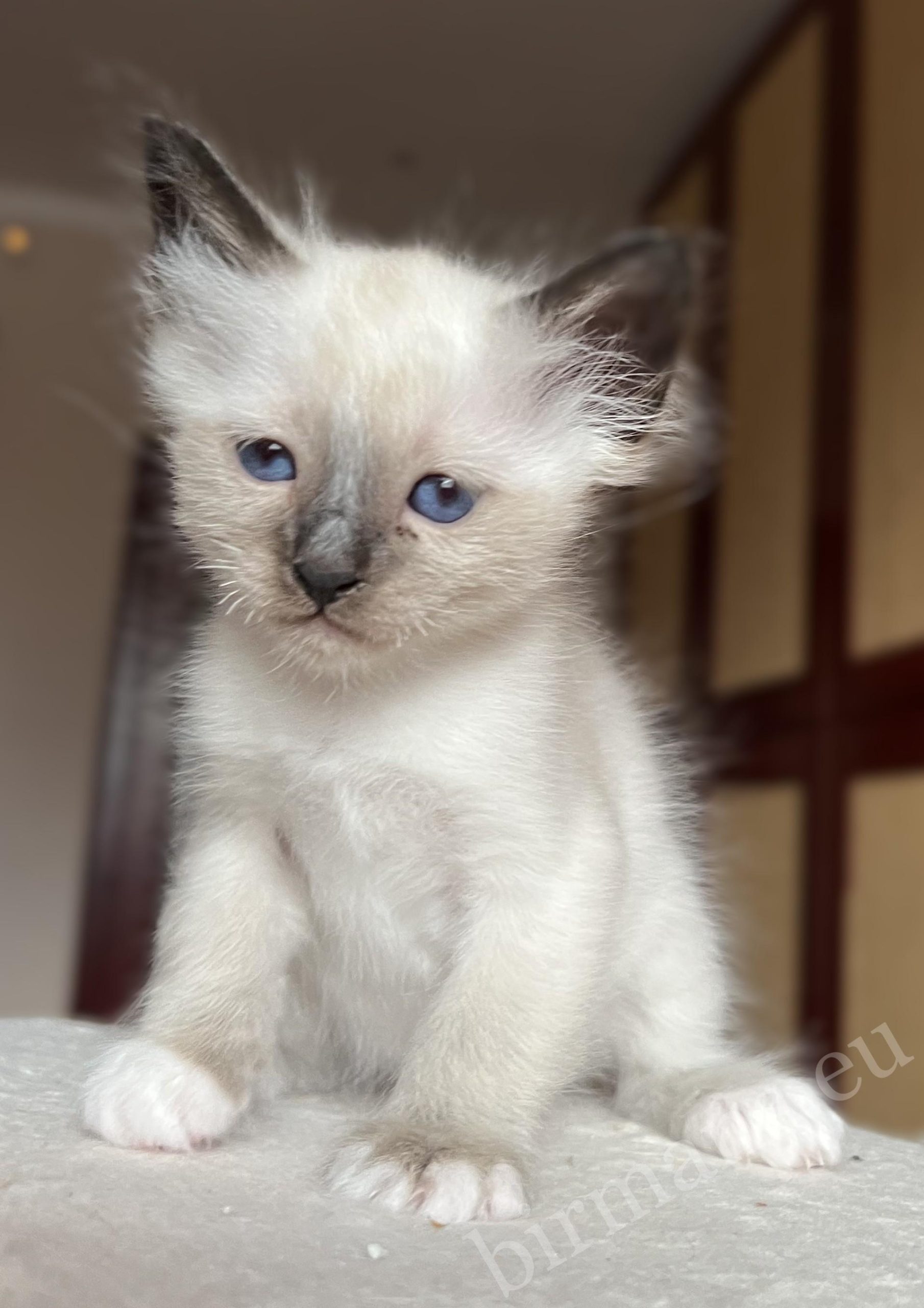 Saba Vico es un gatito Birmano macho especialmente cercano a las personas, tranquilo y equilibrado. Desde los primeros días, fue el primero en ronronear y comer de forma independiente, lo que demuestra su naturaleza estable y segura.