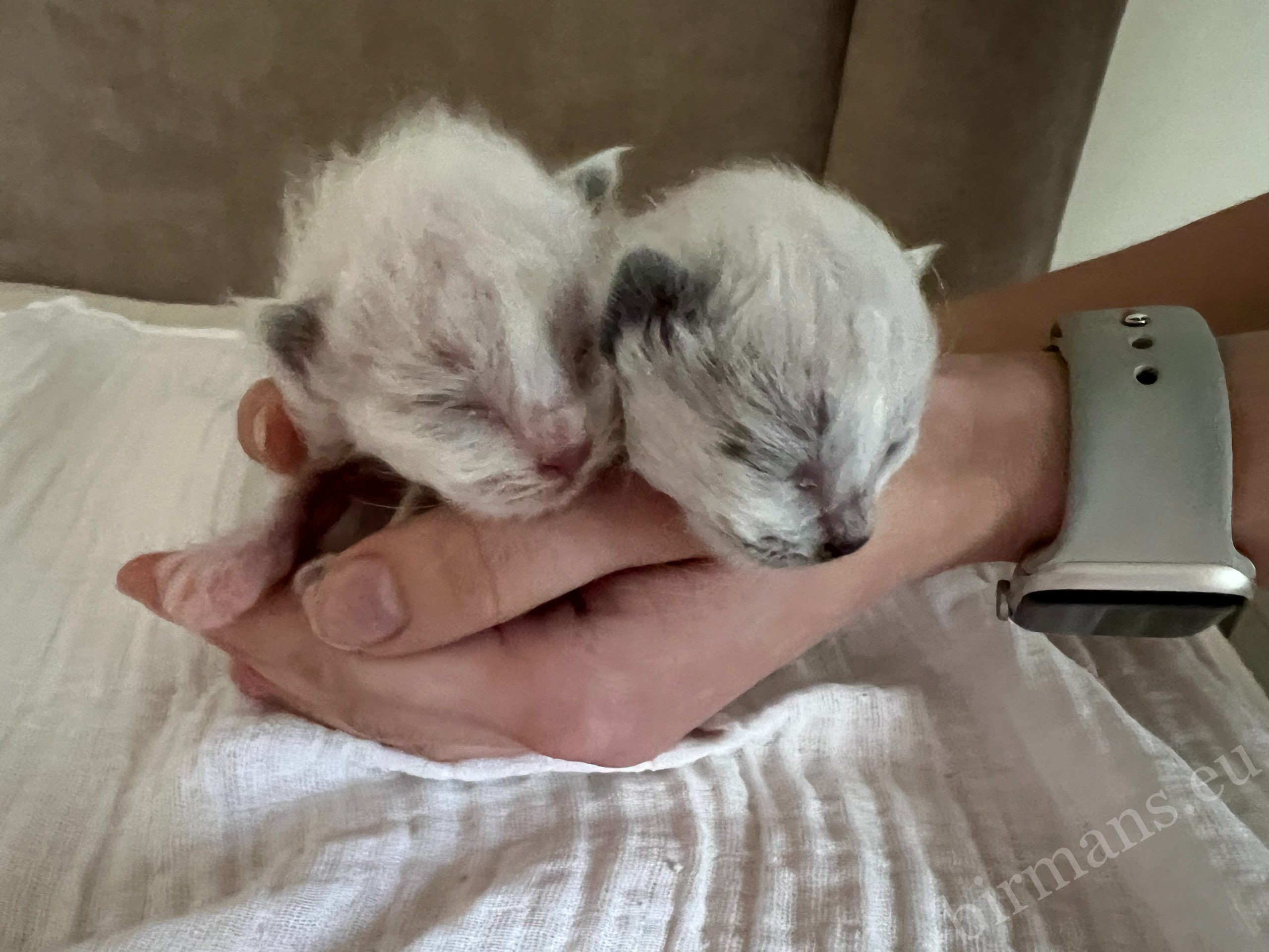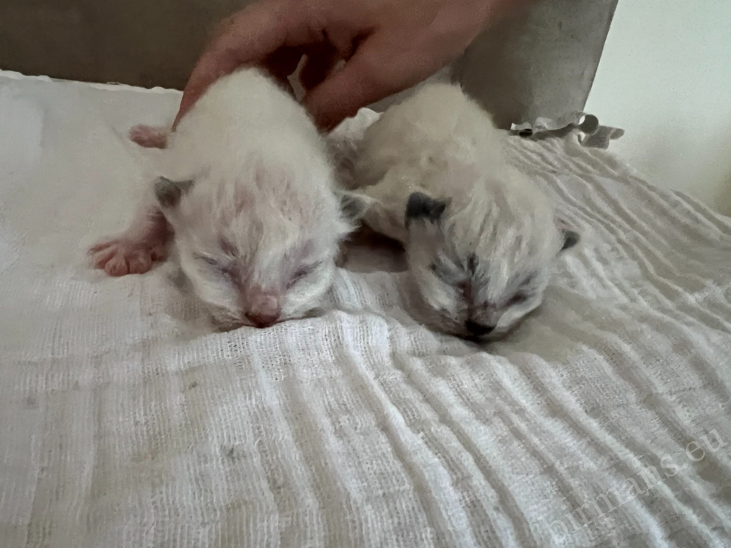 La particularidad de los gatitos Birmanos Saba nacidos en la camada X5 es que en esta camada no aparece ninguna variación de color atigrado. Los cachorros nacen con colores más uniformes y definidos, que realzan el aspecto clásico de la raza. Desde los primeros días, se observa su desarrollo tranquilo y equilibrado bajo el cuidado de la madre. Esta camada representa la línea pura y elegante de la raza Birmana.
