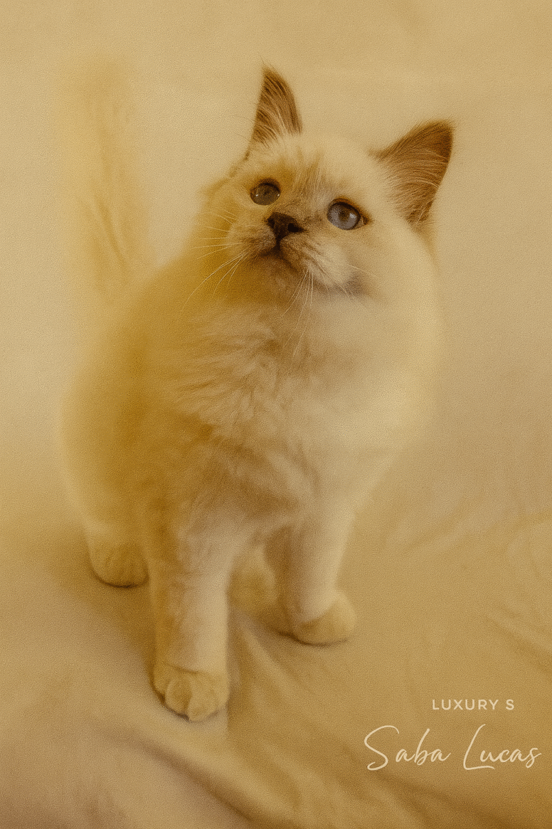 Si buscas un cachorro de Birmania que llene tu hogar de tranquila armonía y paz, Saba Lucas te está esperando. Es una pequeña alma tranquila y equilibrada, que irradia paz en cada momento ruidoso, conservando la amabilidad y elegancia típicas de la raza Birmano.