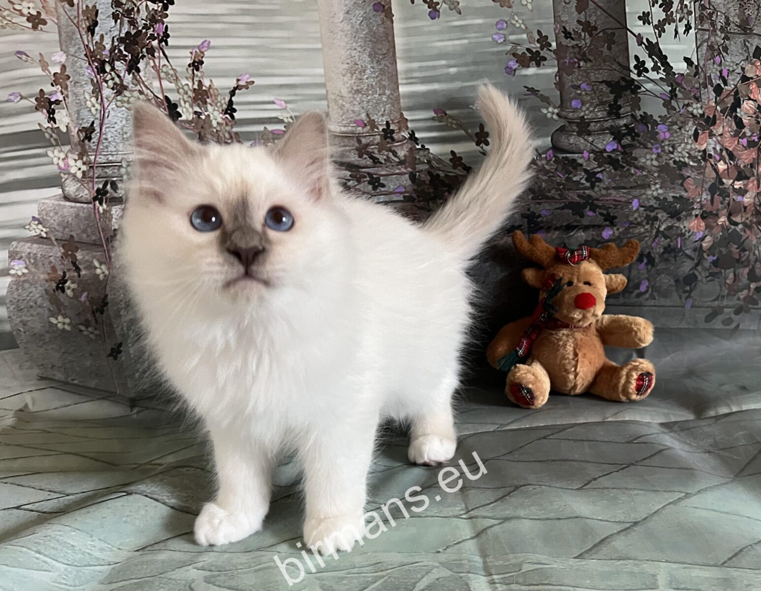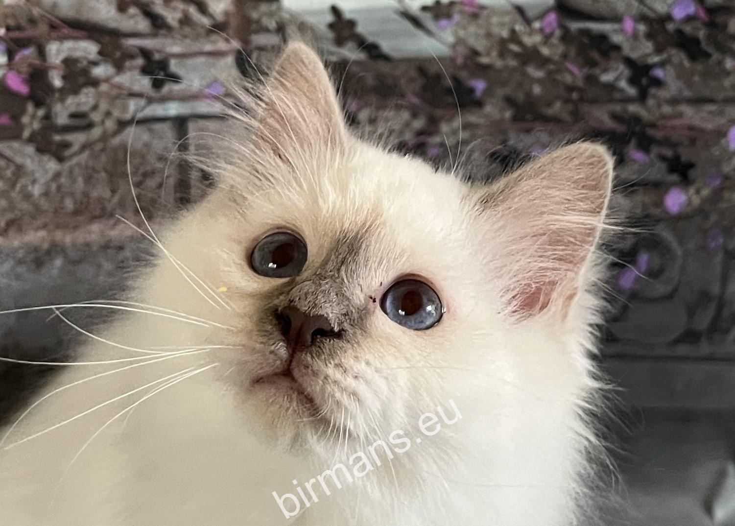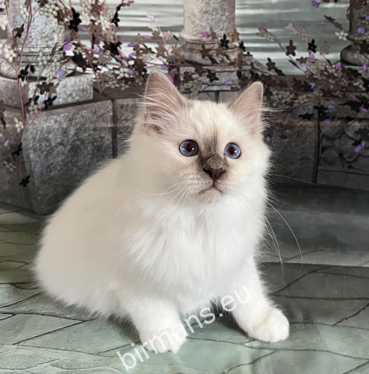 Saba Primus lleva su singularidad en el nombre: entra en los corazones con verdadera dignidad de primogénito. Sus ojos son inteligentes y atentos, y su comportamiento es tanto de curiosidad juguetona como de calma confiada. Primus es un Birmano macho que destaca no sólo por su belleza, sino también por su carácter equilibrado y adorable. Hace que cada día sea una pequeña celebración.