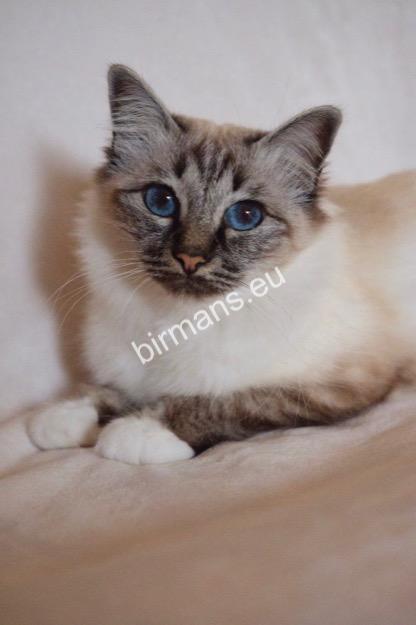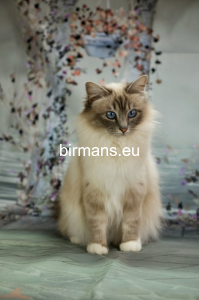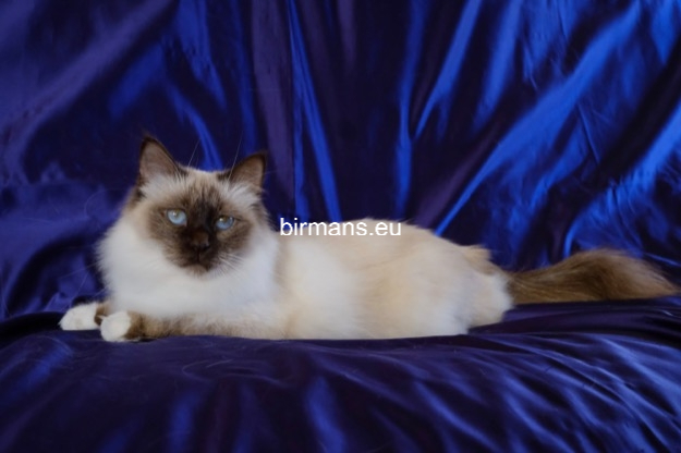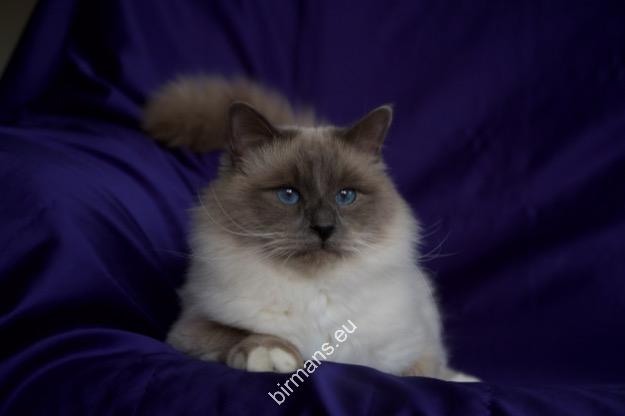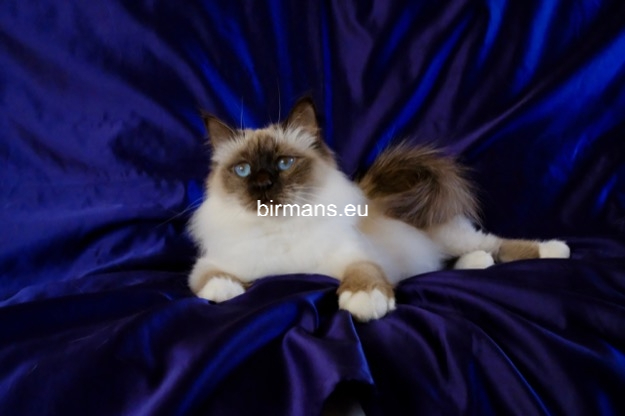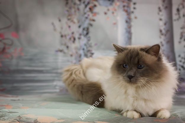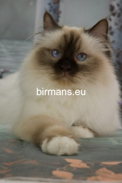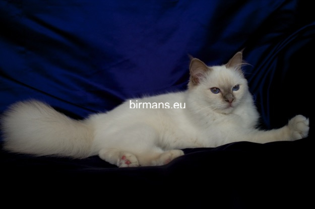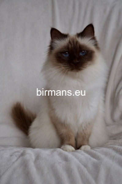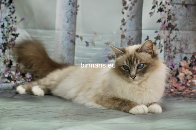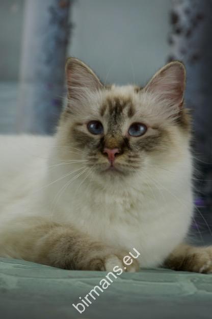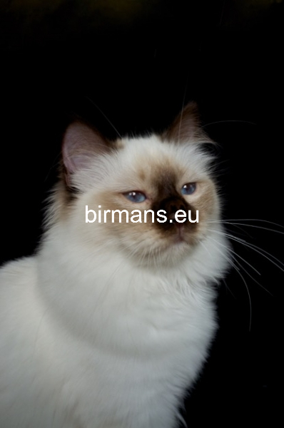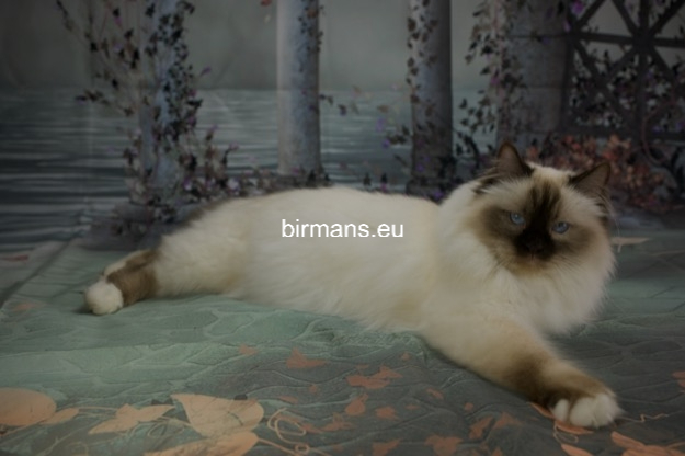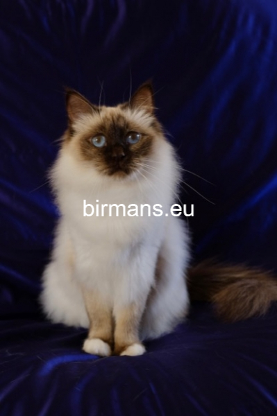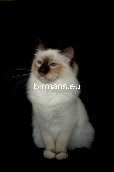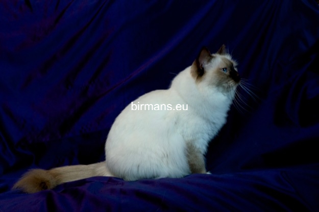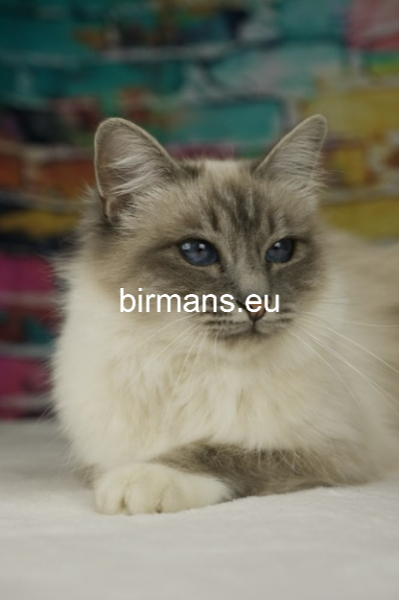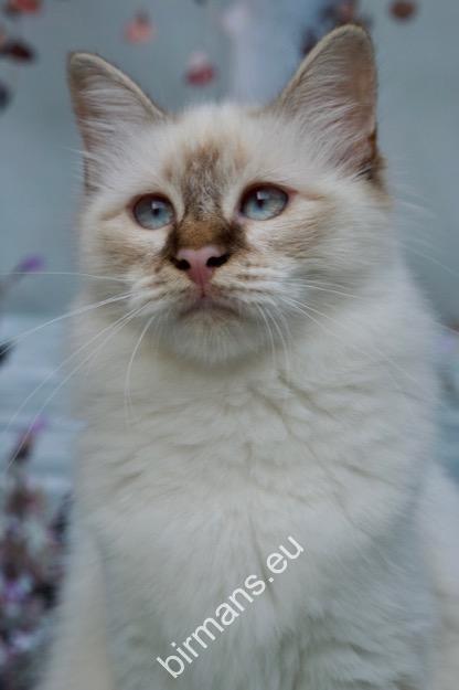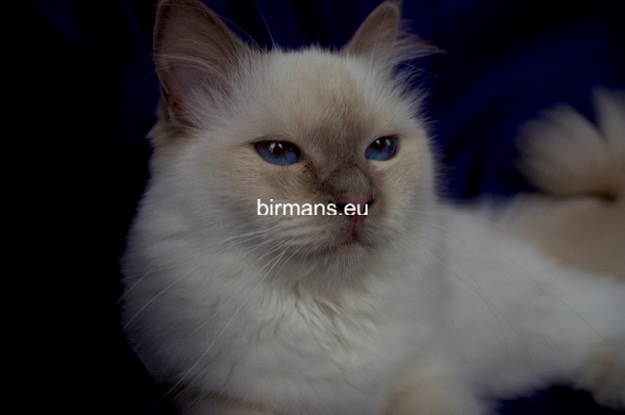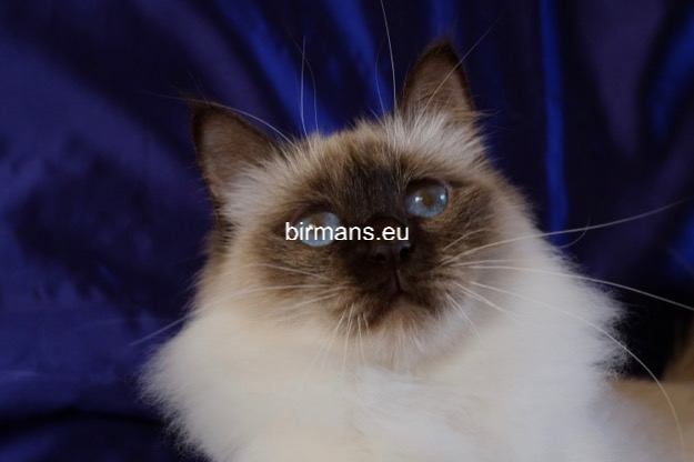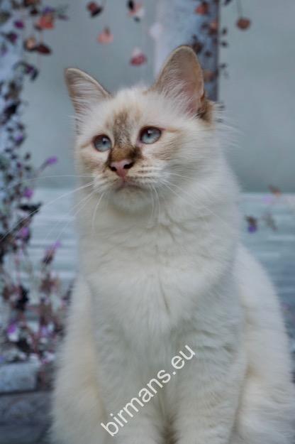 Desdémona es la encarnación inigualable de las cualidades esenciales del Birmano. Su aspecto elegante, su nariz romana, sus orejas redondeadas y su refinado resplandor están en perfecta armonía.