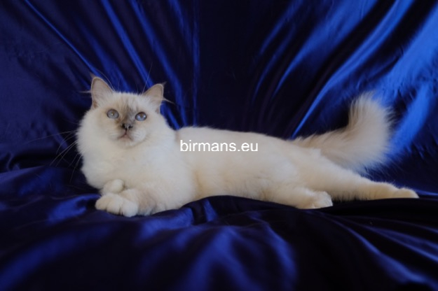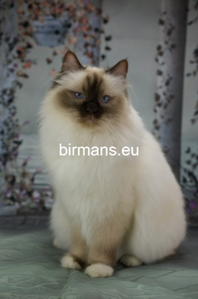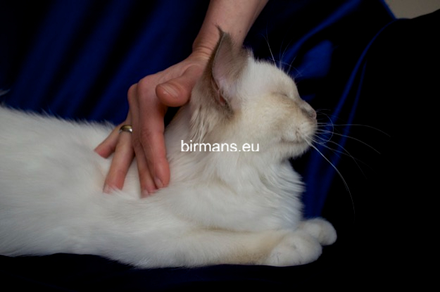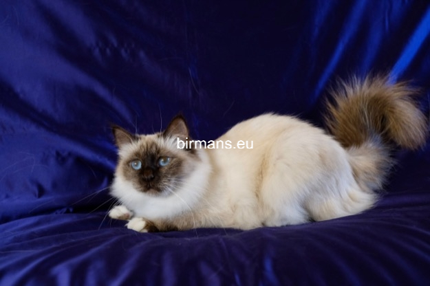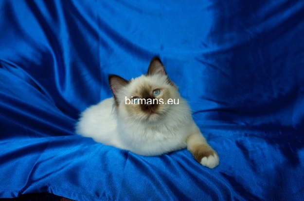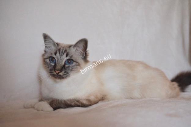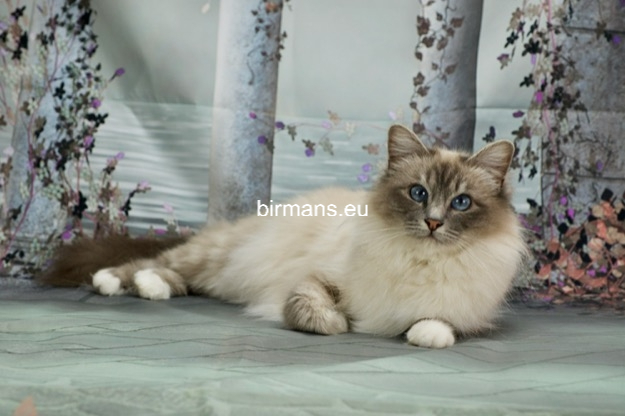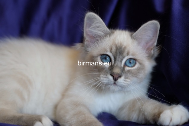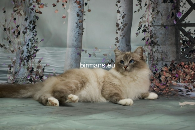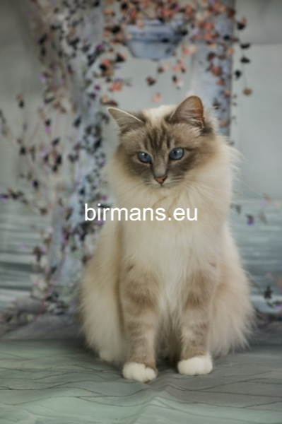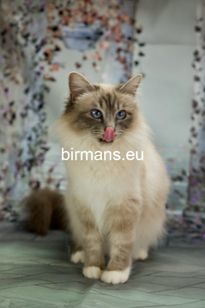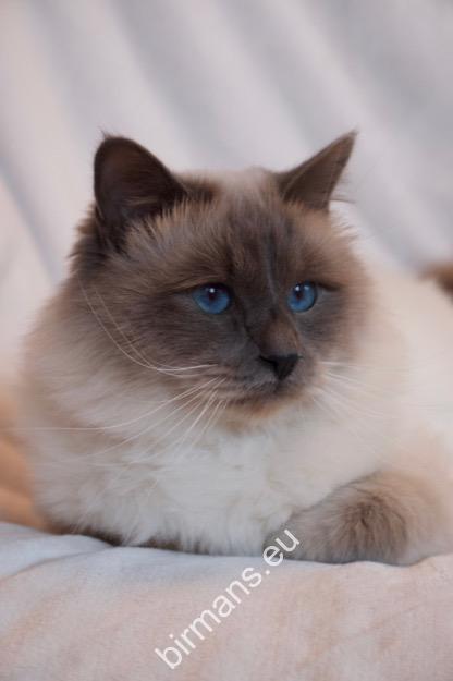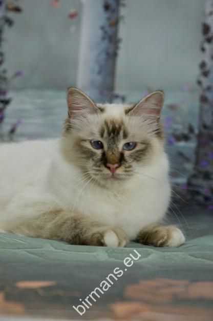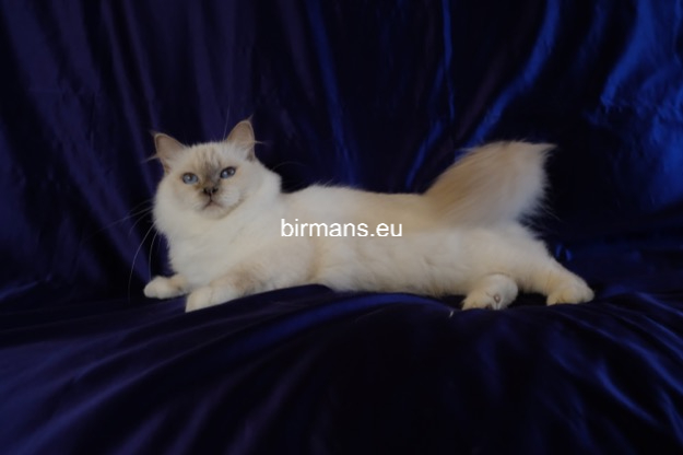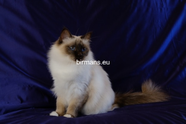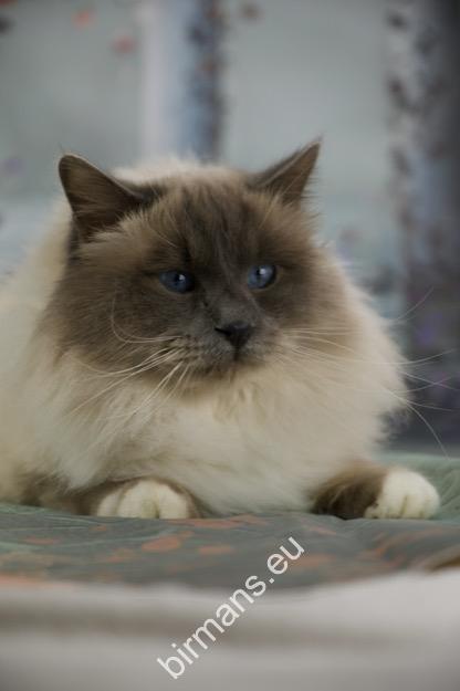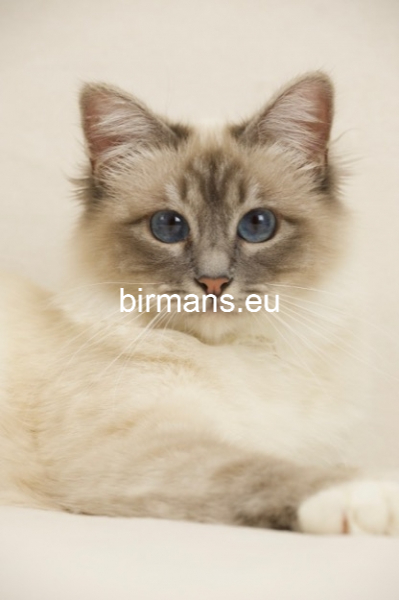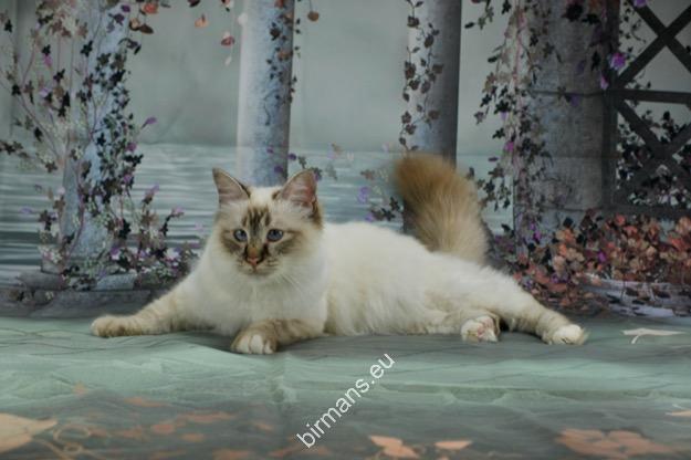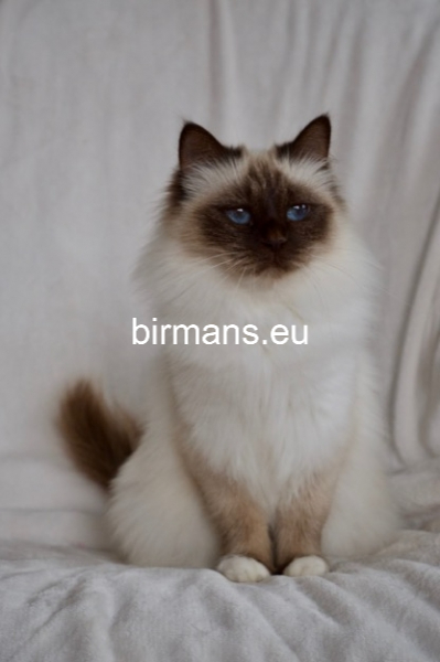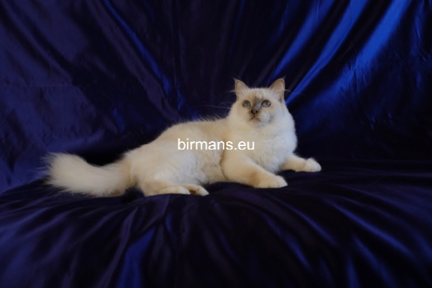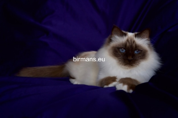 Desdémona es la encarnación inigualable de las cualidades esenciales del Birmano. Su aspecto elegante, su nariz romana, sus orejas redondeadas y su refinado resplandor están en perfecta armonía.