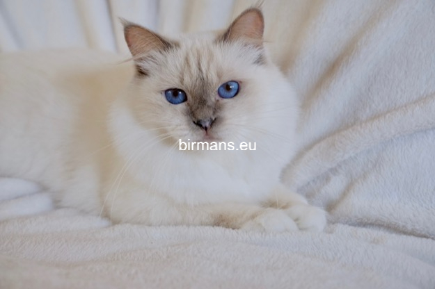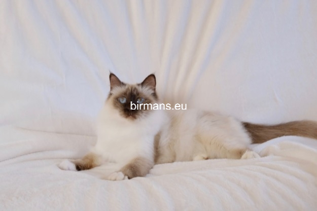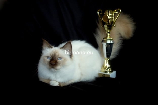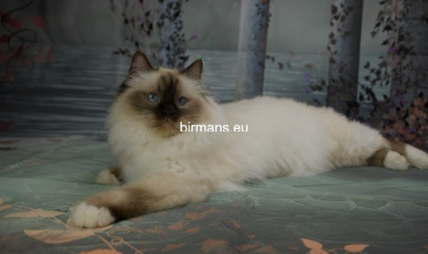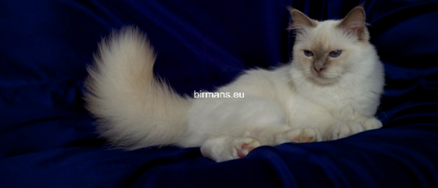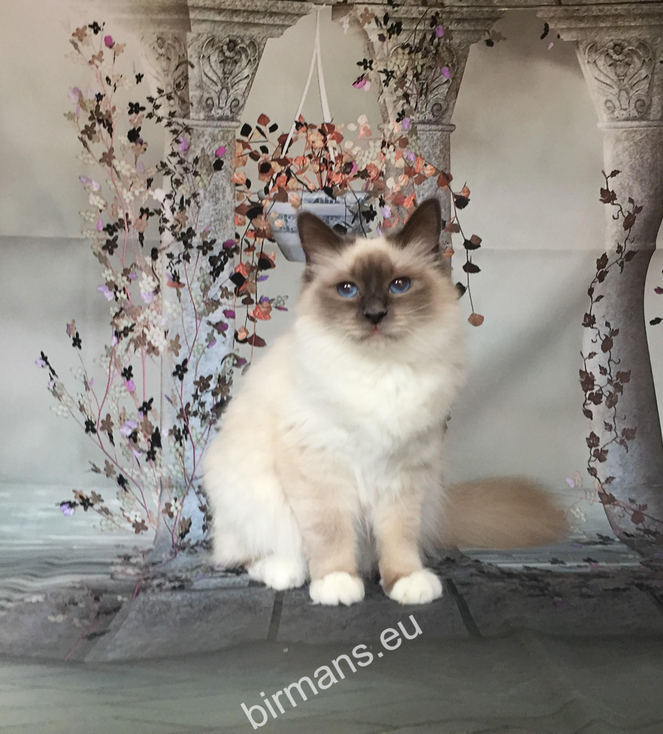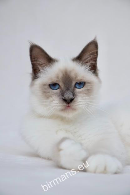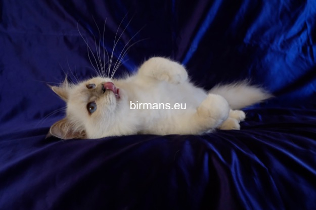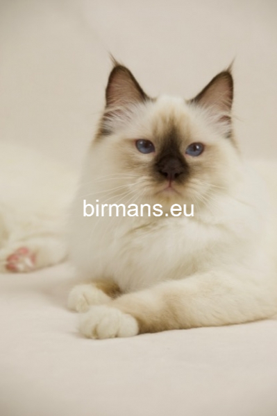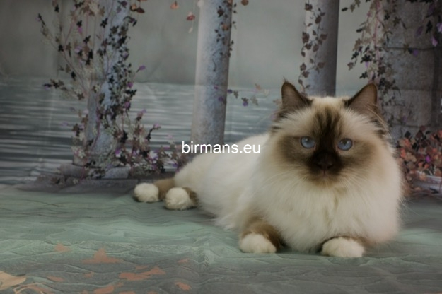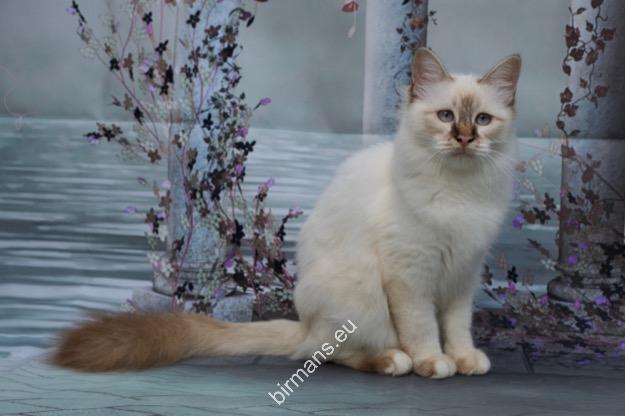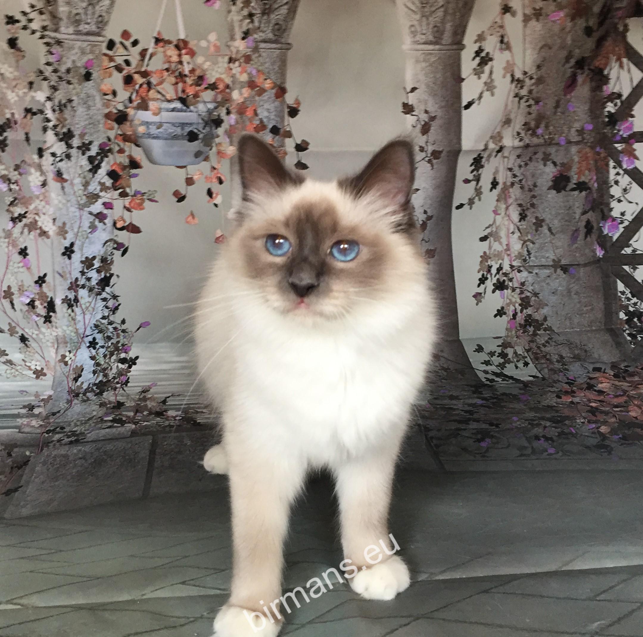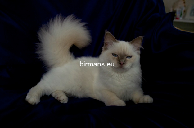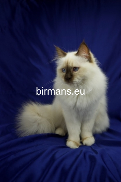 Desdémona es la encarnación inigualable de las cualidades esenciales del Birmano. Su aspecto elegante, su nariz romana, sus orejas redondeadas y su refinado resplandor están en perfecta armonía.