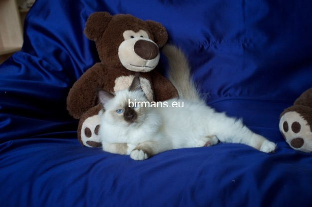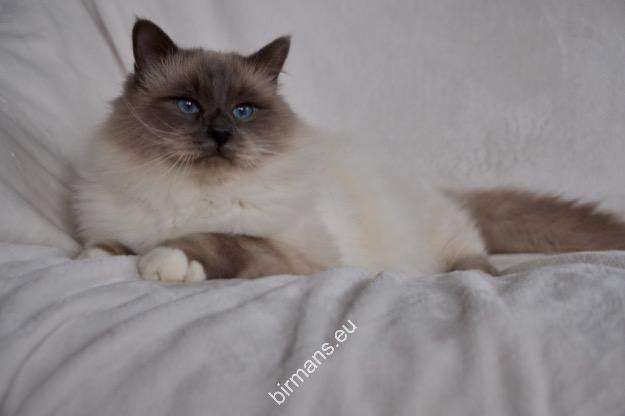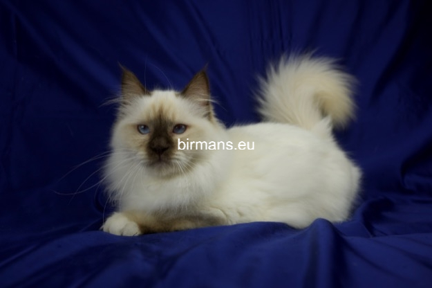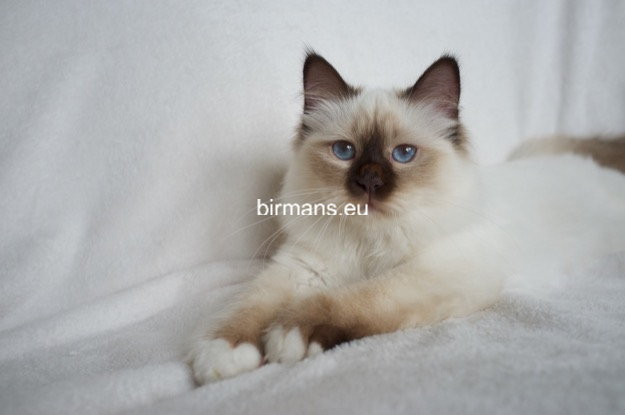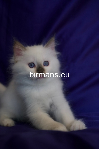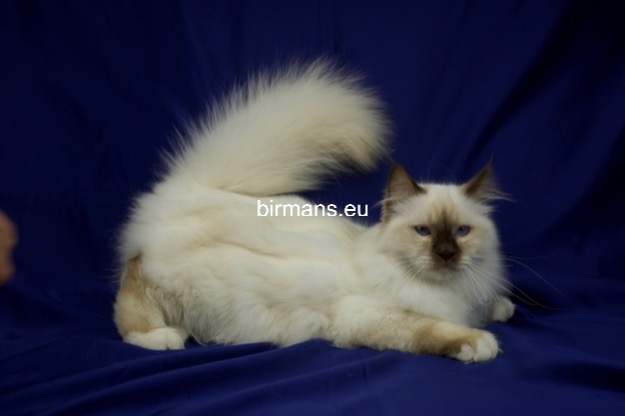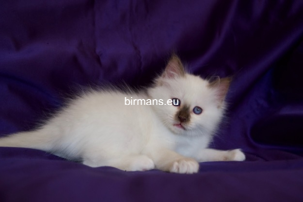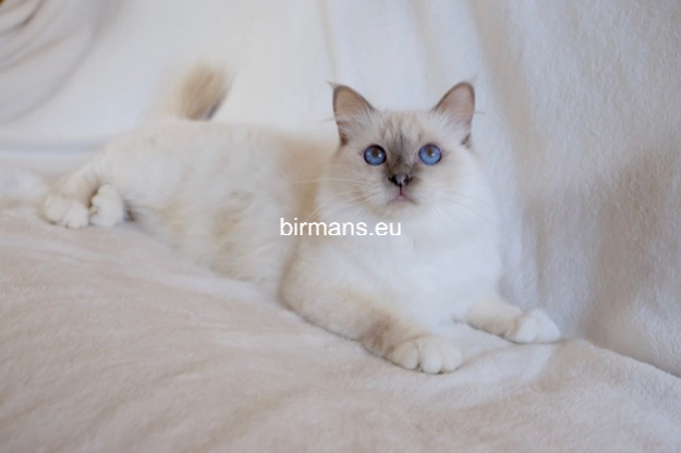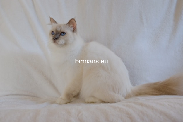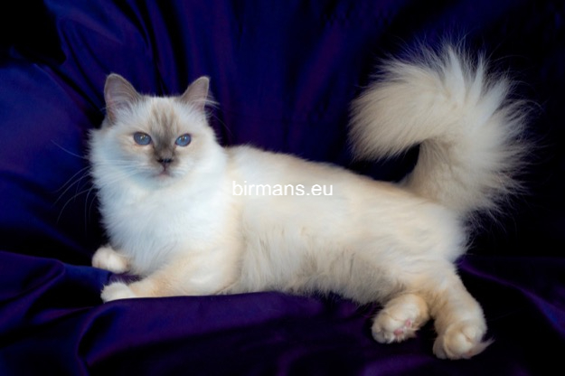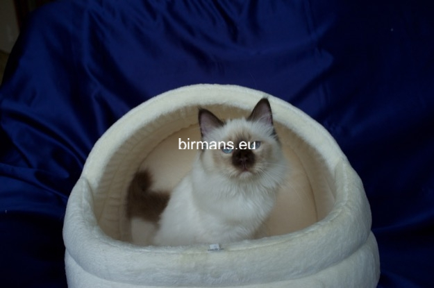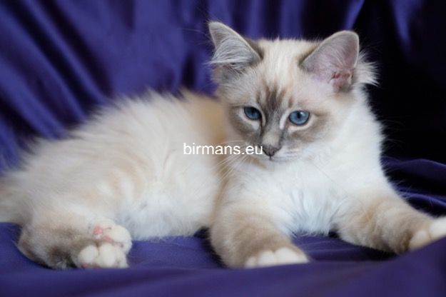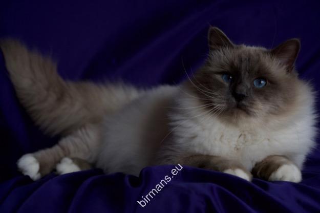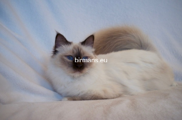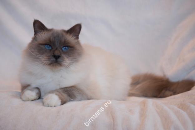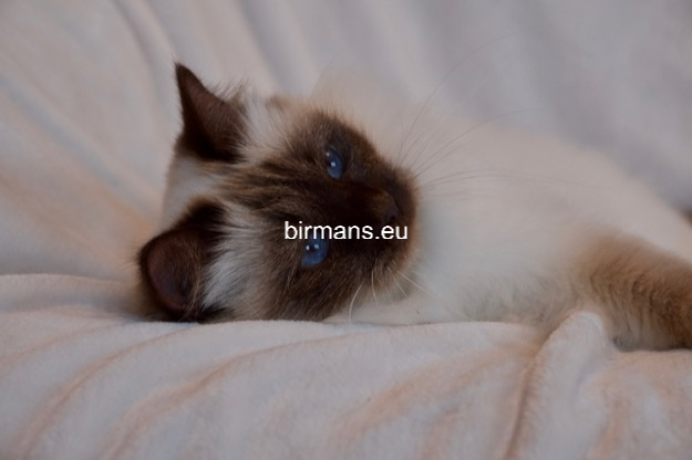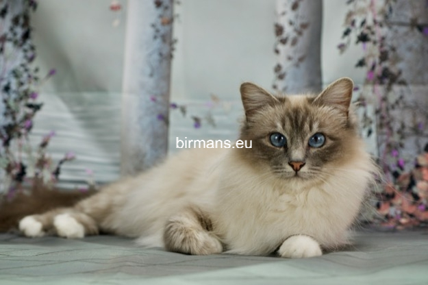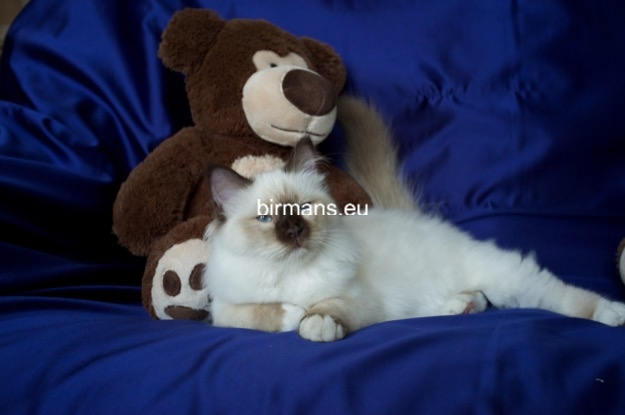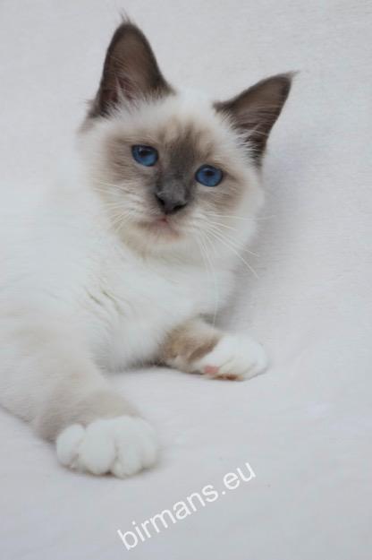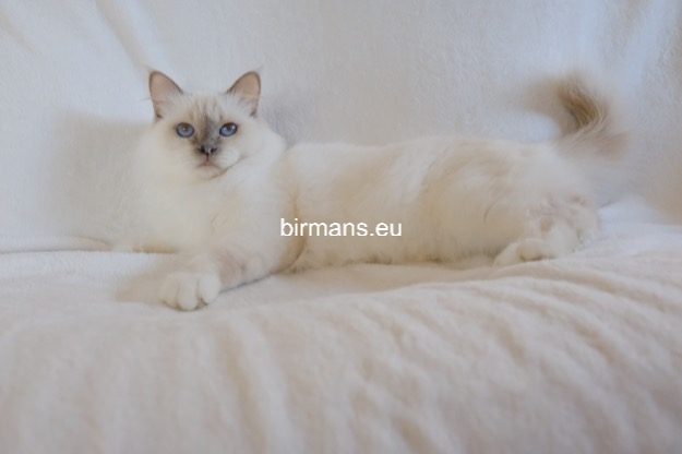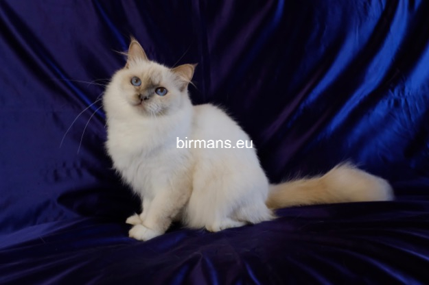 Desdémona es la encarnación inigualable de las cualidades esenciales del Birmano. Su aspecto elegante, su nariz romana, sus orejas redondeadas y su refinado resplandor están en perfecta armonía.