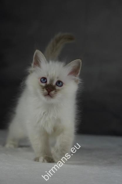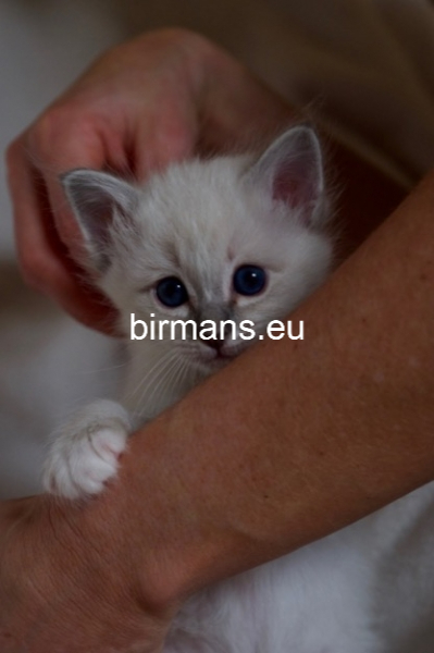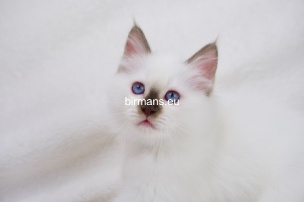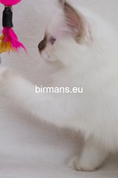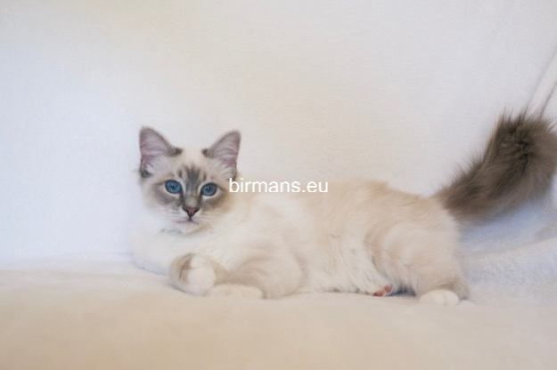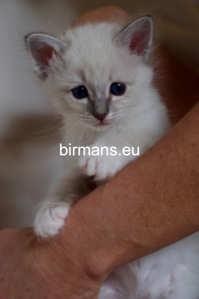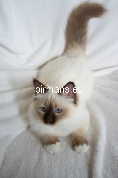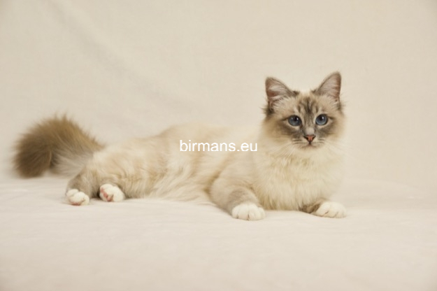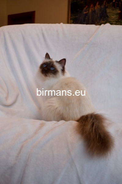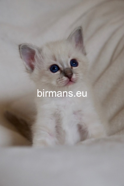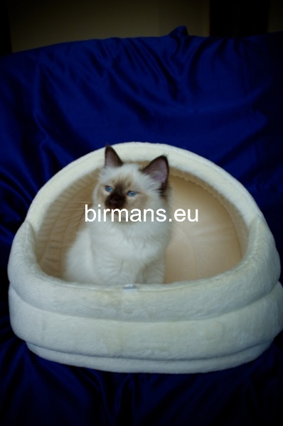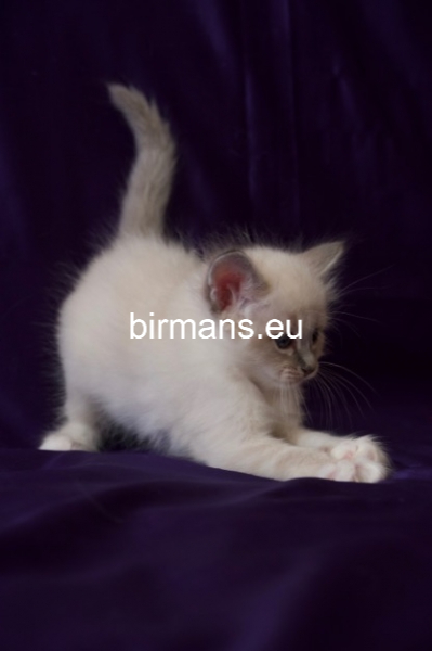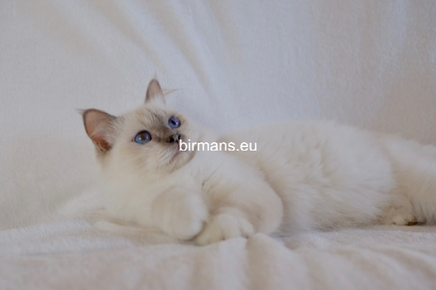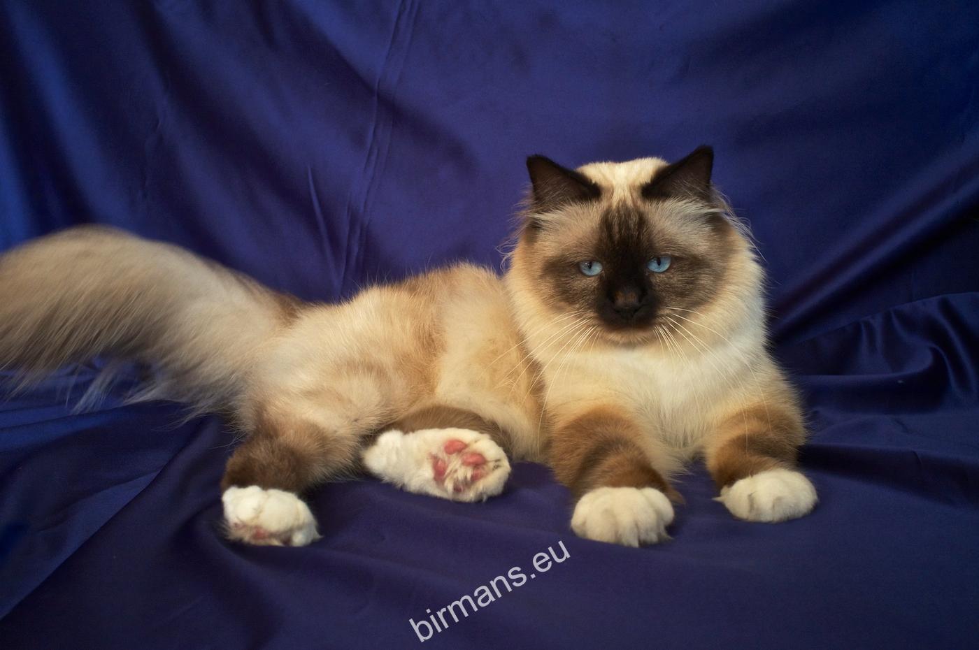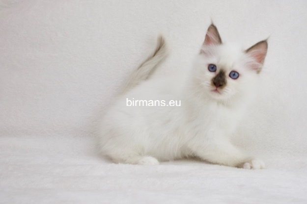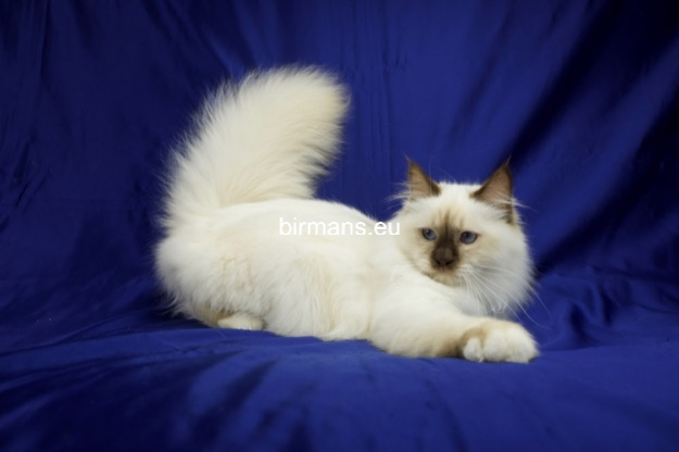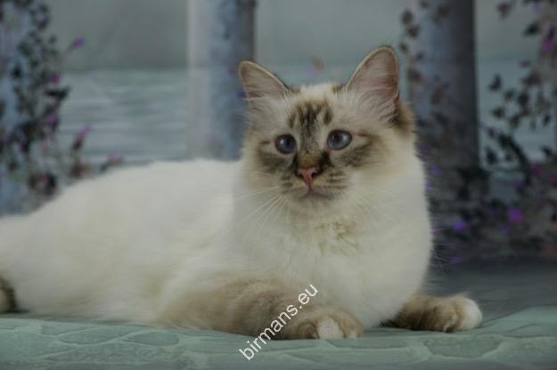 Desdémona es la encarnación inigualable de las cualidades esenciales del Birmano. Su aspecto elegante, su nariz romana, sus orejas redondeadas y su refinado resplandor están en perfecta armonía.